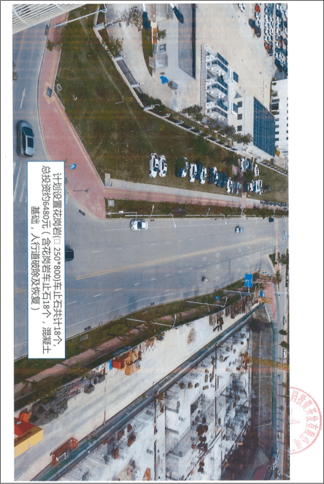 6.招標(biāo)范圍及內(nèi)容:主要內(nèi)容包括:1.設(shè)置花崗巖車止石18個(含混凝土基礎(chǔ)、人行道破除及恢復(fù));2.路況開挖基坑2個(規(guī)格:長2.5米,深0.5米,寬0.8米,兩個基坑相距2.6米),將水泥墩移至基坑中回填并夯實等。