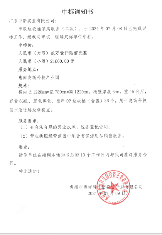 【中標(biāo)通知】市政垃圾桶采購(gòu)服務(wù)(二次)